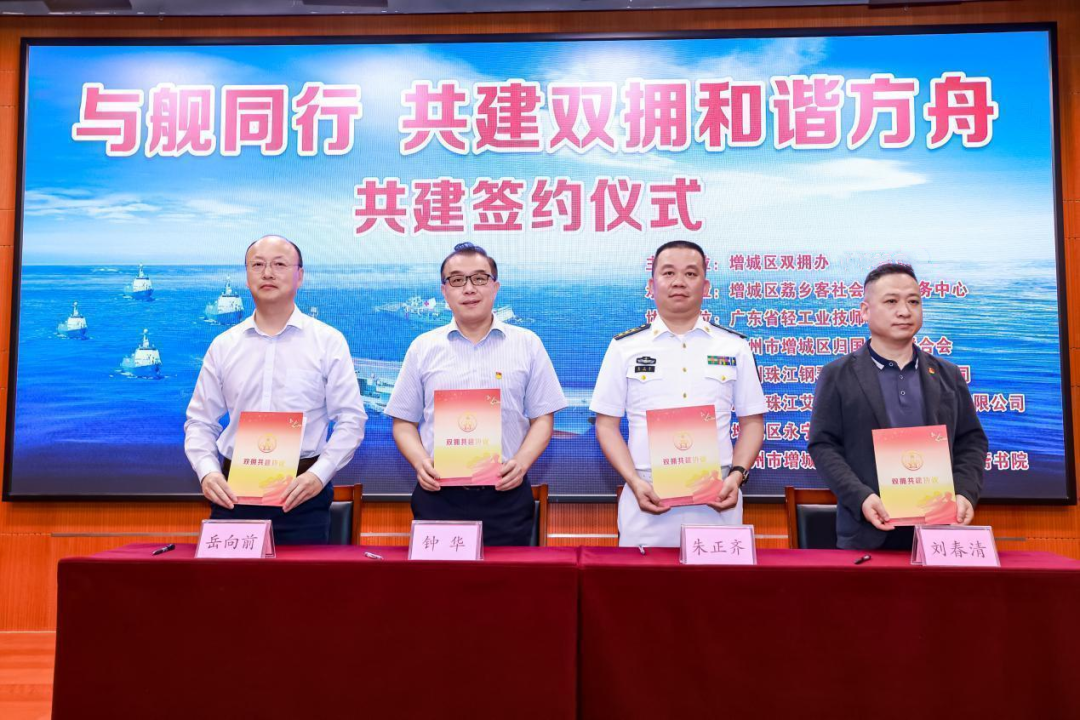 千里亲缘一线牵,万里波涛情不断。增城区双拥办、海军某部队、广东省轻工业技师学院与艾茉森公司现场签署了共建协议,进一步完善军地交流互动机制,创新共建载体、丰富共建内涵、拓展共建领域,不断巩固深化军民团结情谊,着力推动经济社会和国防建设共同发展。