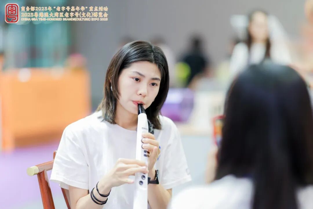 *展会上,珠江艾茉森在进行电吹管直播