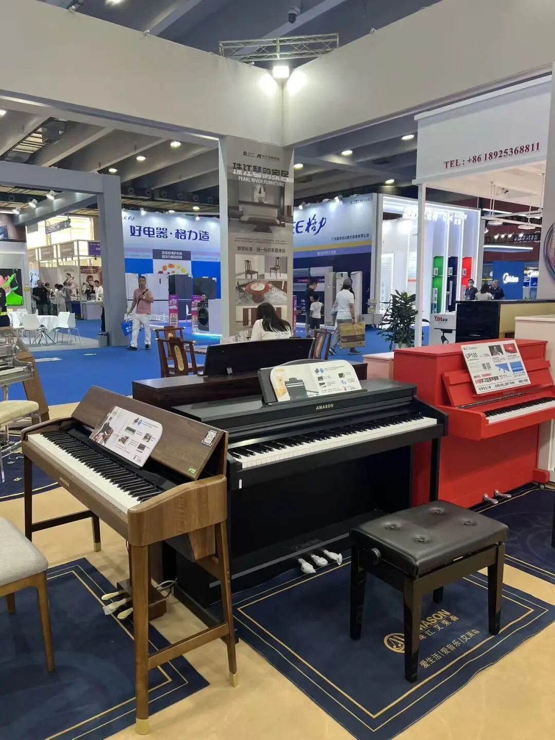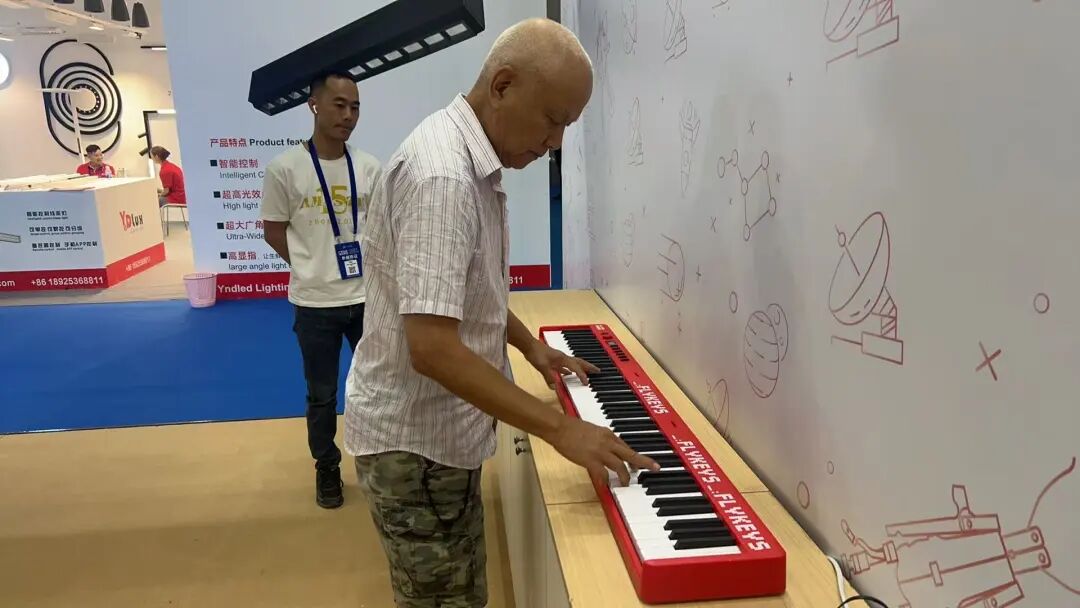 另一边,作为珠江钢琴集团旗下专注电声乐器的珠江艾茉森,紧跟集团步伐,围绕“广东优品·粤见美好”主题在广东优品展览会消费电子展区主要突出展示时下最新的智能乐器研发成果。——折叠琴、空气鼓,电吹管 等产品不仅外观新颖,更体现出科技融合乐器制造的领先成果,凸显出产业升级中的创新活力。